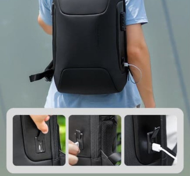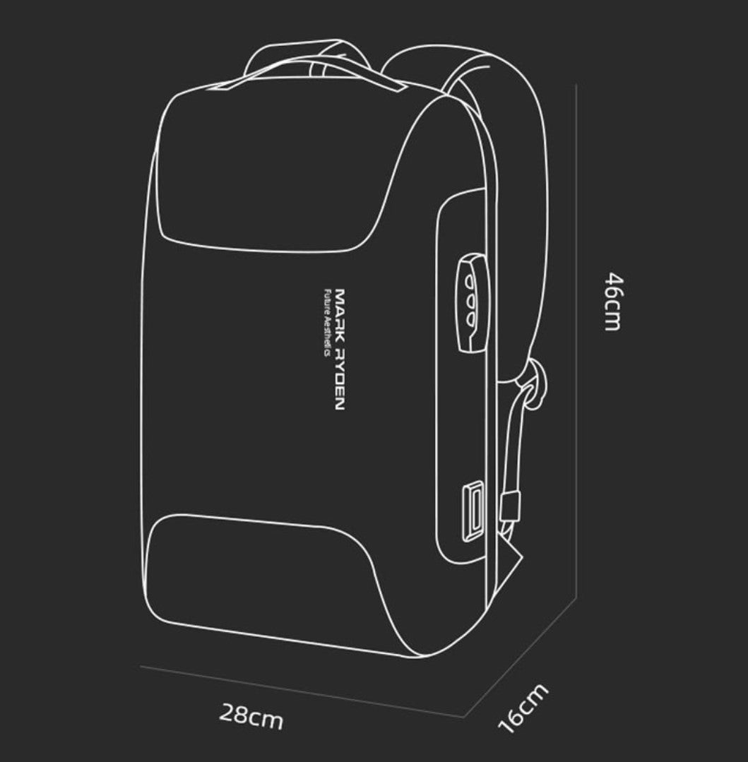 В тази раница лесно можете да поставите - лаптоп, таблет, слушалки, фотоапарат и друга техника. Както и всички необходими вещи за ежедневно ползване. Раницата е водоустойичва със специален USB порт и Micro USB порт, а също така и ключалка за заключване на циповете, така че можете да бъдете сигурни, за своите вещи.