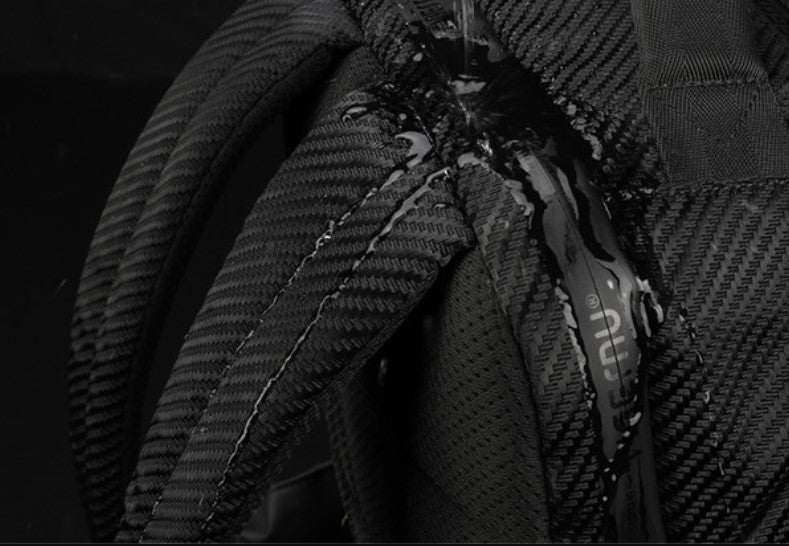 Раницата е изработена от специален материал, който да издържа на удари и нарязване.