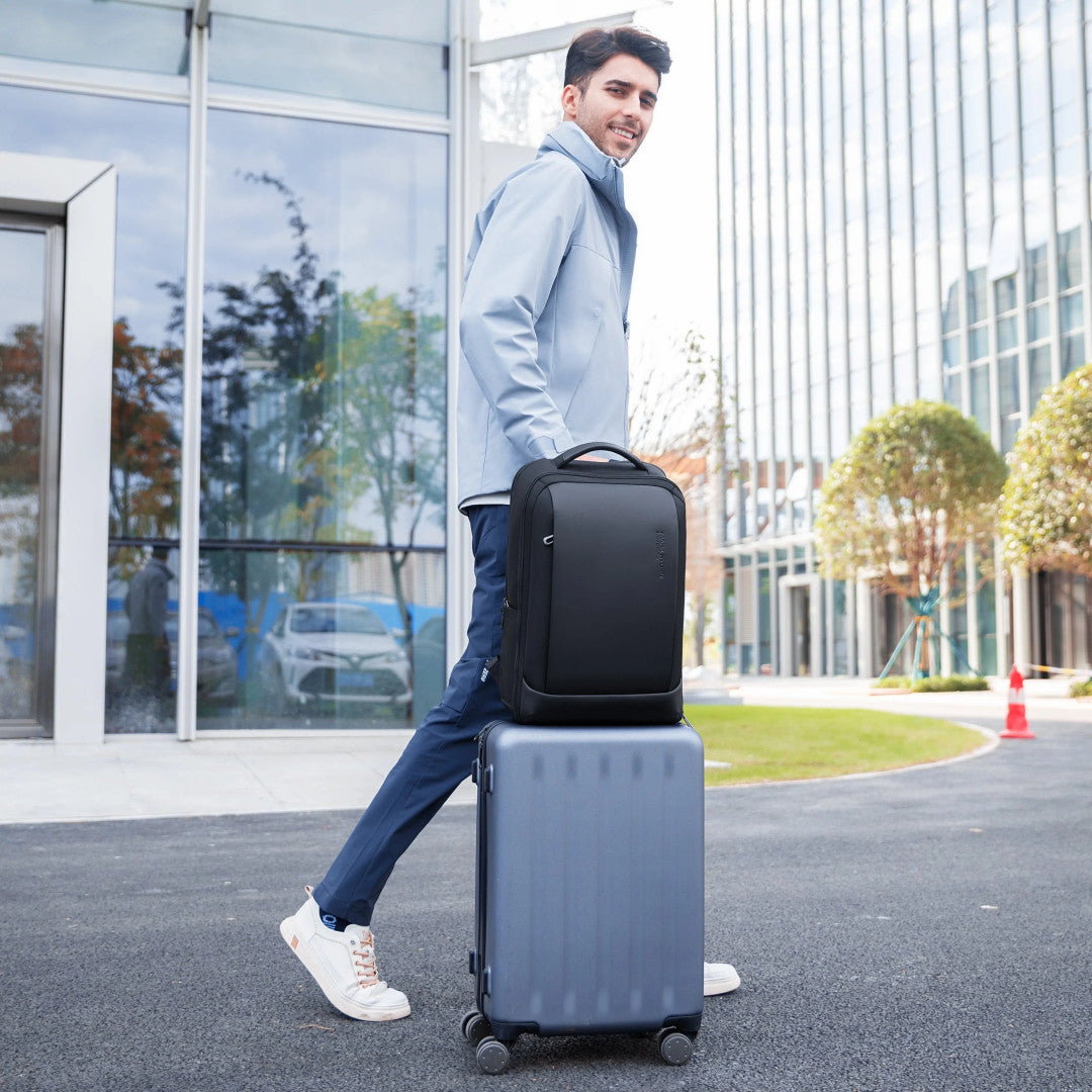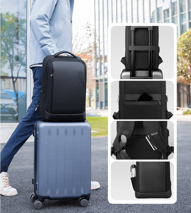 Добавена е и дръжка за прикрепяне към куфар това я прави перфектна за пътуване, както в града така и със самолет. Раницата има достатъчно място, където да сложите своите таблет, лаптоп, дрехи, книги и периферия. Дръжките на раменете са ергономични, осигуряващи допълнителен комфорт, а също така и че няма да се изпотите докато я носите.Защо да изберете тази раница1. Отваряне на 180 градуса2.Водоустойчивост3. USB зареждане4. Дръжка за куфар5. YKK ципове