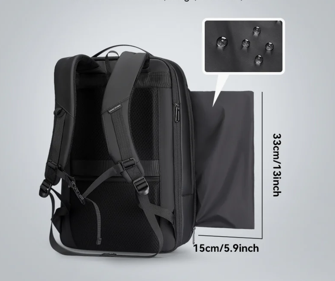 Раницата е водоустойчива, за 100% сигурност в дъжда. Вече можете да сте по-спокойни, носейки лаптопа си на гърба в дъжда.