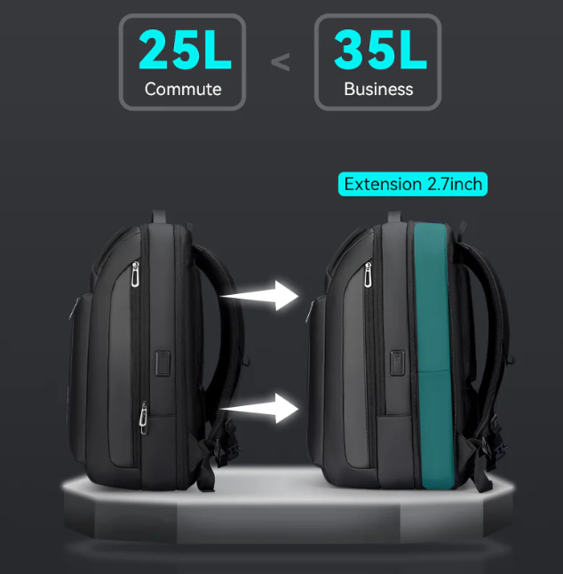Друга чудесна функционалност е възможността за разширяване, когато имаш нужда от допълнително пространство за пътуване или екскурзия. Раницата е проектирана така, че може да се разтяга и да стане голяма, колкото малък куфар, а иначе казано до 38 литра побираемост. Достатъчно място, което да побере дрехите за 2-5 дни пътуване, а също така ще има достатъчно място за целия ти комплект козметични принадлежности.