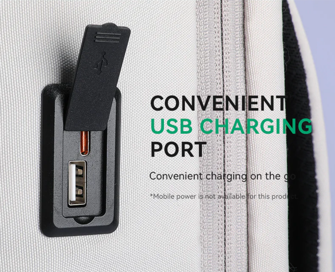 Expandos разполага с място и отделения за всичките ви вещи. Можете да поберете лаптоп, телефон, таблет, слушалки, безжичната клавиатура и мишка. Удобно ще можете да зареждате и използвате телефона си, докато сте в движение, благодарение на функцията за зареждане с USB!