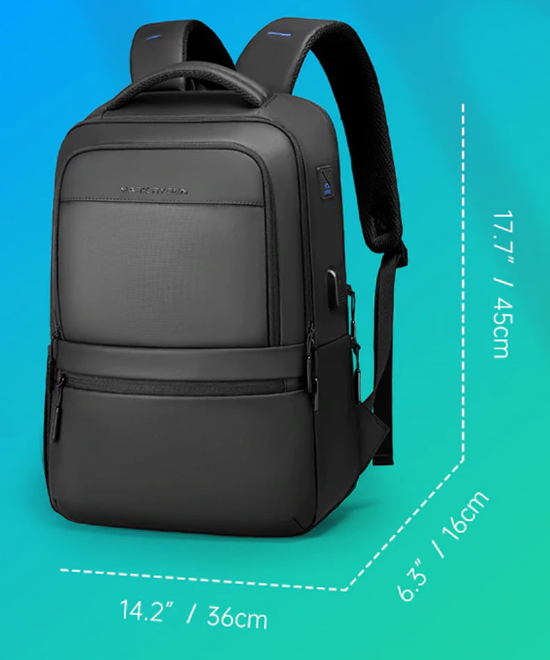 В тази раница лесно можете да поставите - лаптоп, таблет, слушалки, фотоапарат и друга техника. Както и всички необходими вещи за ежедневно ползване. Раницата е водоустойичва със специален USB порт и Micro USB порт, а също така и ключалка за заключване на циповете, така че можете да бъдете сигурни, за своите вещи.