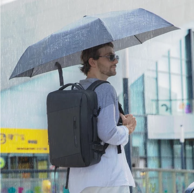 Тази раница е с 100% водоустойчивост, за сигурност в дъжда. Сега можеш да бъдеш спокоен, носейки скъпите си вещи като лаптопа на гърба си в дъжда.