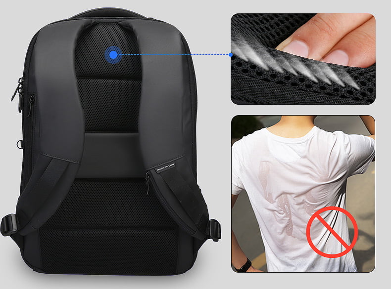Раницата е направена с проветриви, дишащи материи, които позволяват на въздухът да циркулира и извеждат топлината навън, така че дане причиняват неприятно изпотяване.