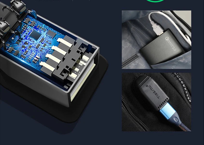 USB зареждане за вашият телефон. Просто включете power bank вътре в раницата и телефона си отвън и бъдете онлайн. (Батерия не е включена)